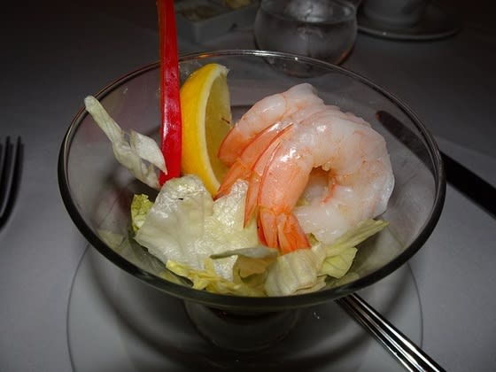 先ずは、アメリカ船では定番のシュレンプカクテル。トマトケチャップ