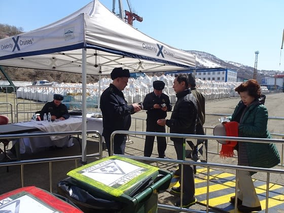 一階の下船ギャングウエイより外に出ることができるが、下船口で再び、ロシアイミグレのチェックがある。