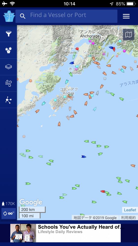 現在位置は、下記中央の青い船です。