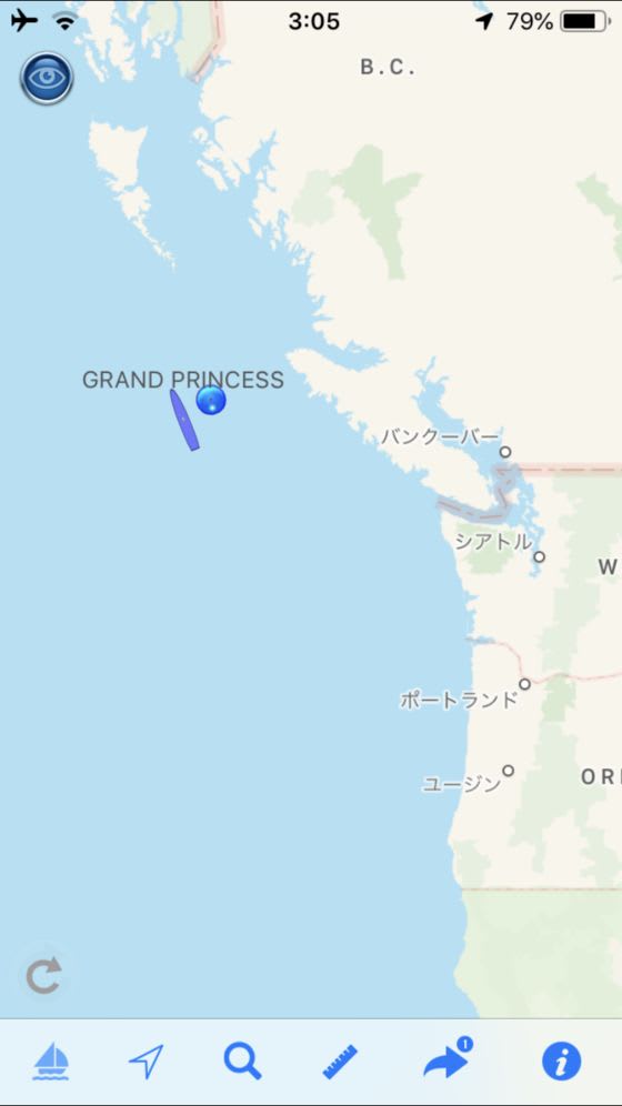 グランドプリンセス隣の青丸が、本船。