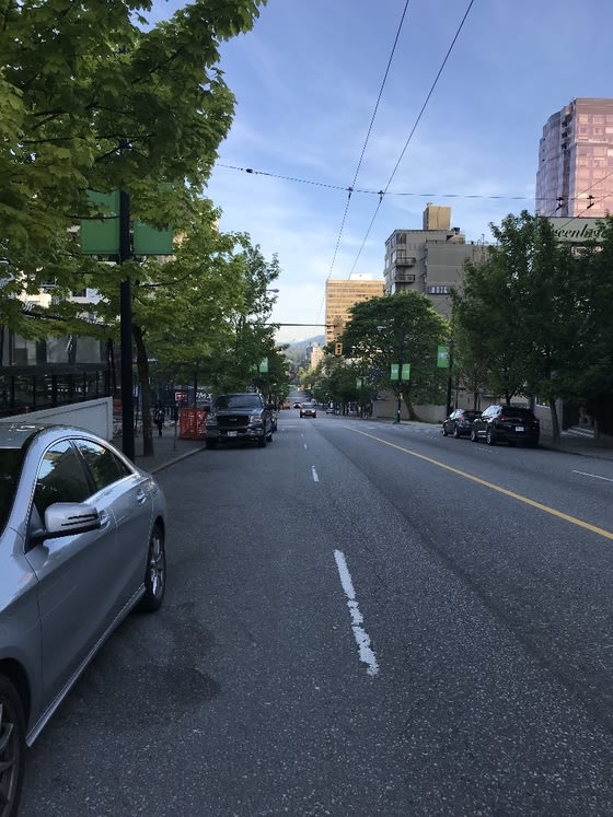 カナダのバンクーバーは、大都会であるが、都市の周りは、森林が連なり、緑が多い。上記写真は、日本では銀座遠いのロブソン通り。早朝の為、本当に静かな佇まい。