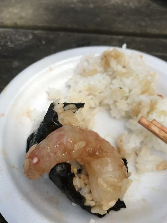 地元バンクーバー在住のYさんが、醤油、ワサビ、白いごはんを用意。