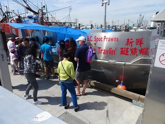 5月だけのVancouverの旬、ぼてんエビの漁船には多くの人が集まる。