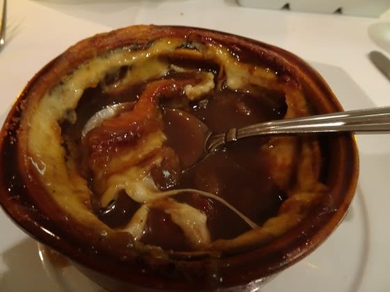 スープの定番は、やはりこれ「フレンチ オニオンスープ」=「オニオングラタンスープ」これも船に乗った時の喜びの一つと思う。