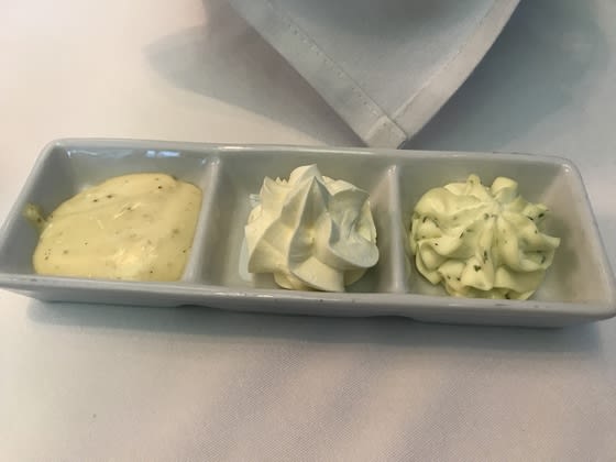 ホースラデッシュを加えたものなど、日々各種のバターが、バンの楽しみを倍増させてくれる。これはセレブリティーならではのサービスであり。