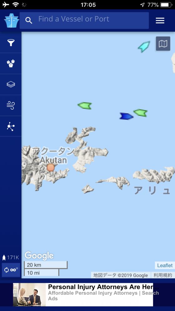 私は、船のネット経由にて、GoogleMapやAIS船舶位置情報システムによって、調べていた。