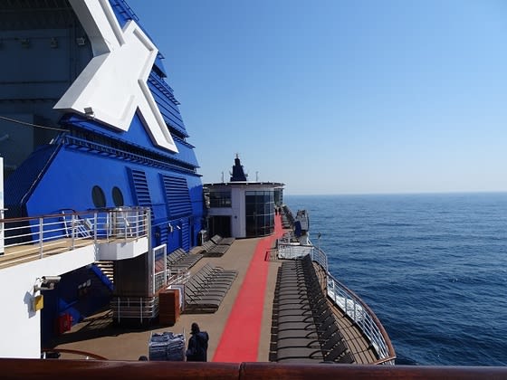 > ARIA様 飛行機も搭乗すると、フライトマップがありますが、船も操舵室ブリッジの情報も 客室のテレビモニターで見られるのが普通です。現在位置の他、外と室内のブールの温度などがわかります。 今回はちよっと変でした。