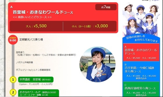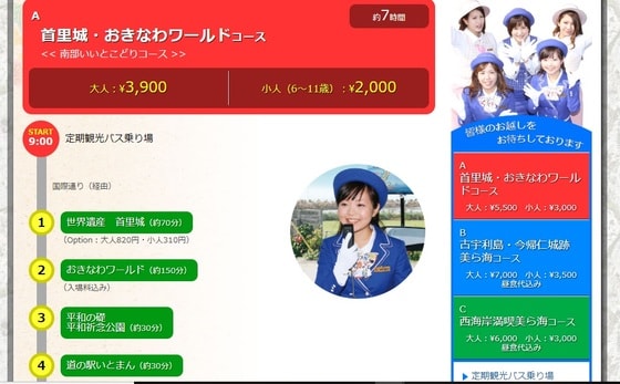 沖縄バスセンター発着の、首里城⇒沖縄ワールド⇒平和記念公園⇒道の駅いとまん⇒バスセンターの七時間コース。
