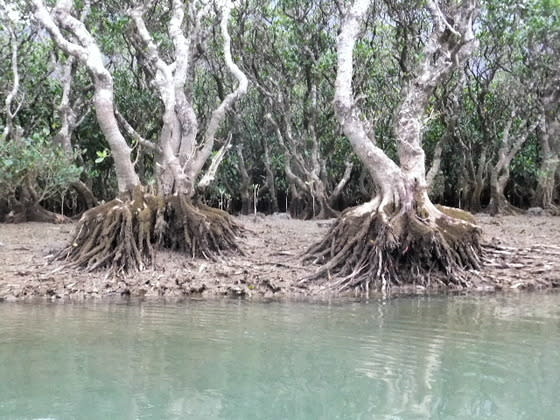 うーんこれは遠いなと思う。新しいマングローブは、その後ろのお兄さんマングローブより大きく成長しない。塩害は葉にためて、葉を枯らす。