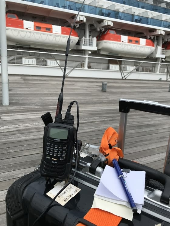 横浜大桟橋で無線運用、ダイヤモンドプリンセスを下船して