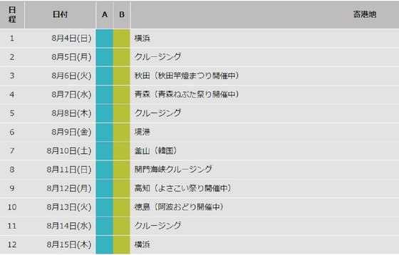 恒例のダイヤモンドプリンセスは、日本発着最大の売りのコースが現在航行中である。その名は以下の通り。