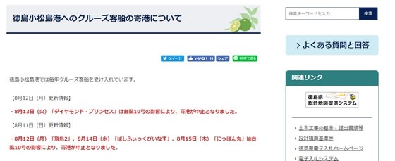 台風十号とクルーズ客船:相次ぐ阿波踊り寄港中止!