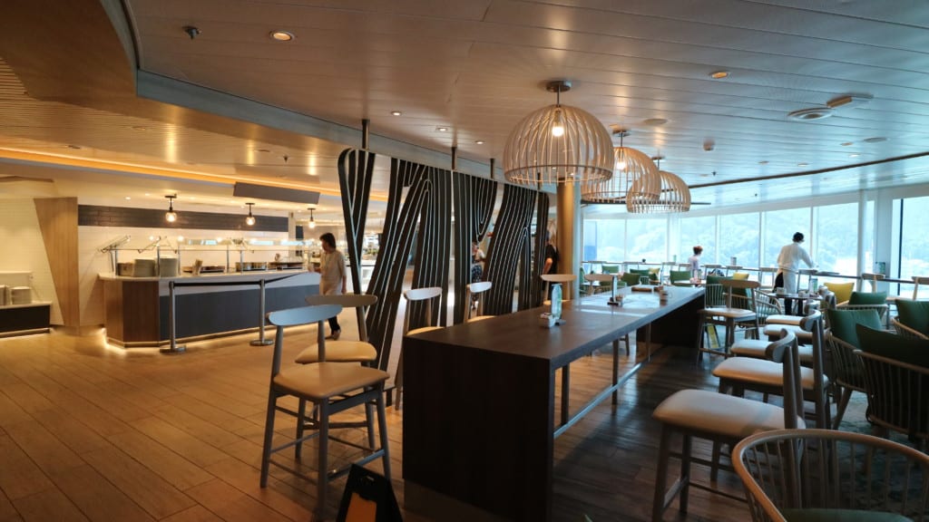 朝一番にブッフェ オーシャンビューカフェに行ってもあまり混雑した印象が少なかったセレブリティ・ミレニアム。日によって多少の時間は違いますが、朝食6:00前後〜ブランチ11:00という時間帯で開いていました。