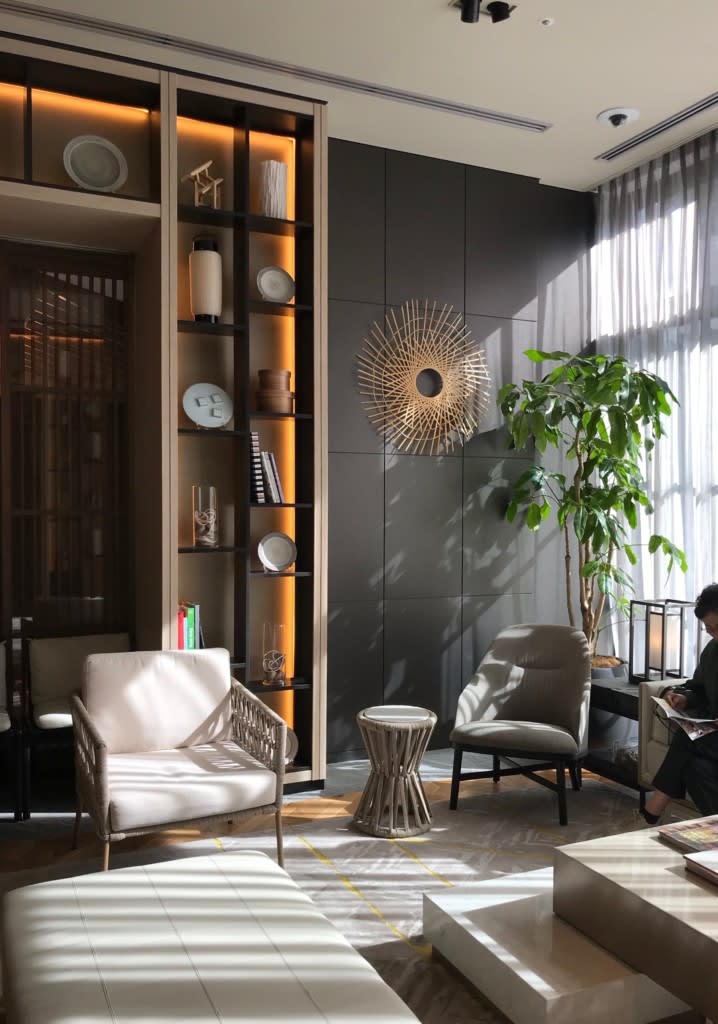 今年6月にオープンしたばかりの新しいホテル。ロビーはリビングのような設え。大きな窓からの自然光が入り明るく落ち着いた雰囲気です。