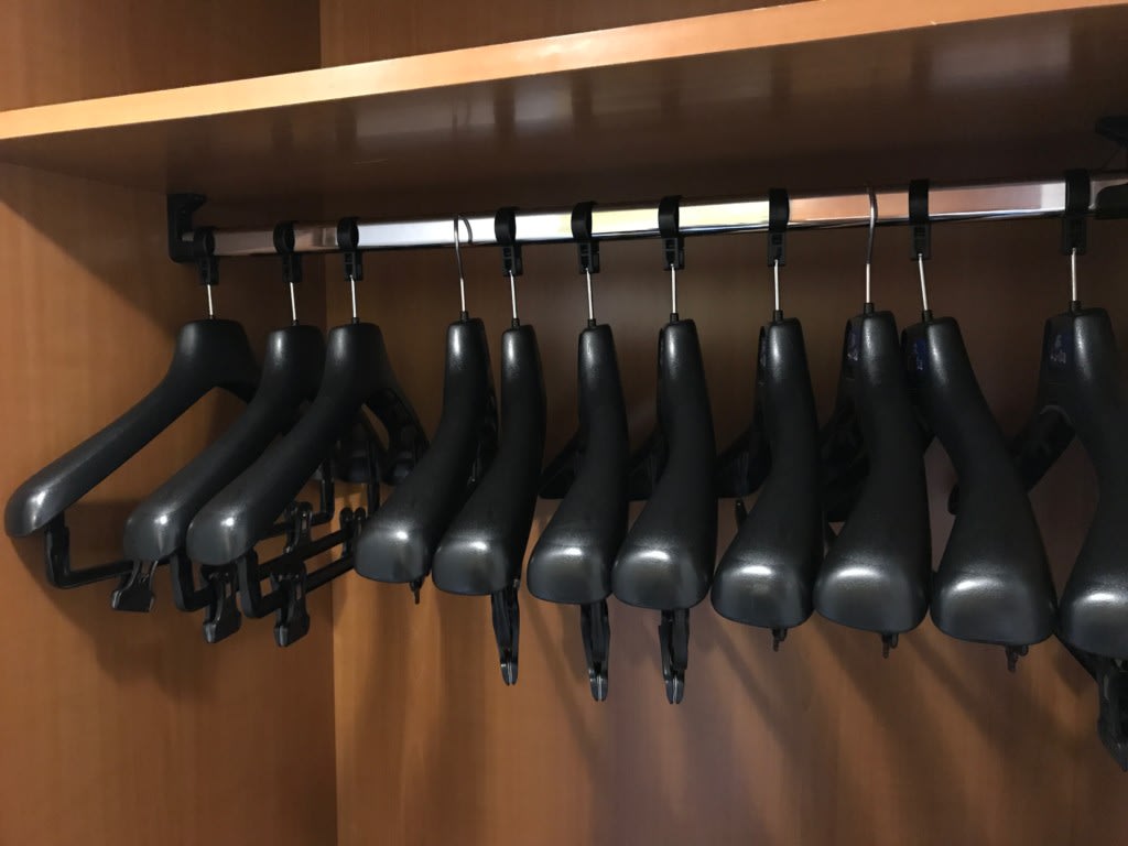 サン・プリンセスの客室は、クローゼット、荷物の収納ラック、ドレッサーの引き出し、テレビ横のテーブルとラック、ベッドボード脇の収納引き出しとし客室内の備え付けの収納も多いとのことです。