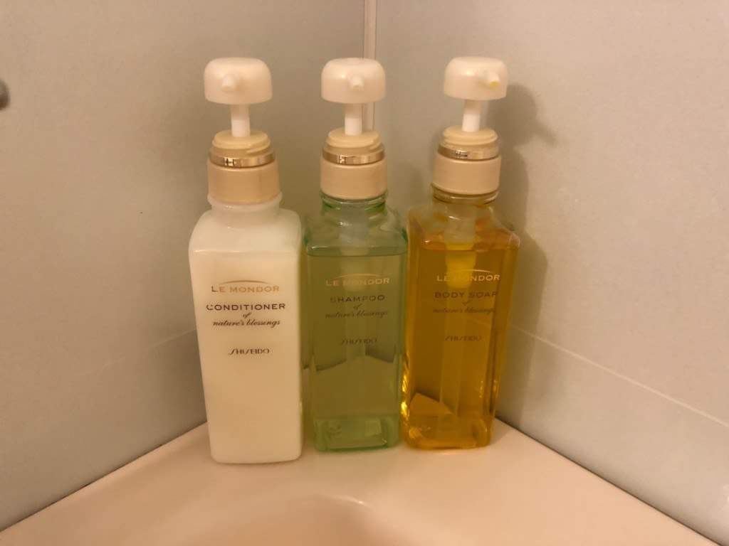 シャンプー、コンディショナー、ボディソープは資生堂。シャワーの湯量も申し分ありません!