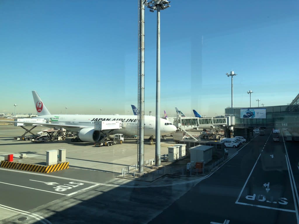 出発時間の約3時間前に羽田空港国際線国際線ターミナルに到着。余裕のつもりでしたがJALのカウンターには長蛇の列、そして進みが遅い…。