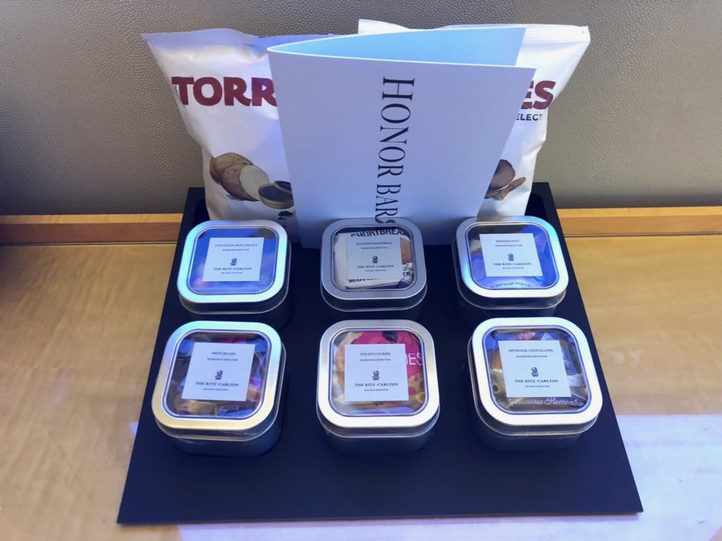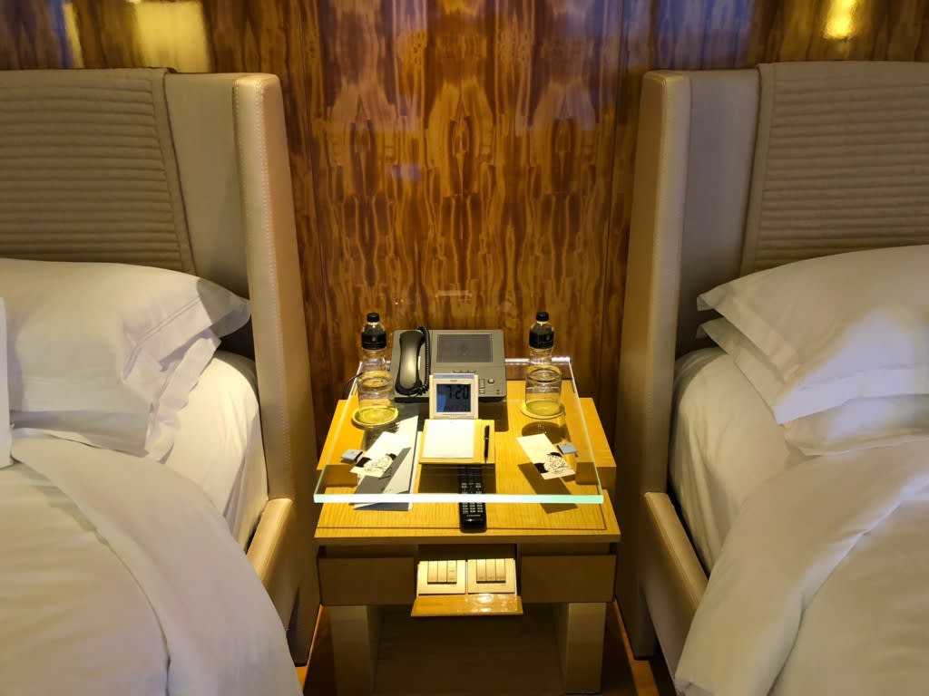 ベッドサイドにはリッツのミネラルウォーターとグラスがありました。リッツのミネラルウォーターは他にも電気ポットのそばにも2本あり無料です。ルームサービスの度に補充しておいてくれます。補充されたものを飲みきってしまってもっと欲しい場合も無料でくれるそうです。