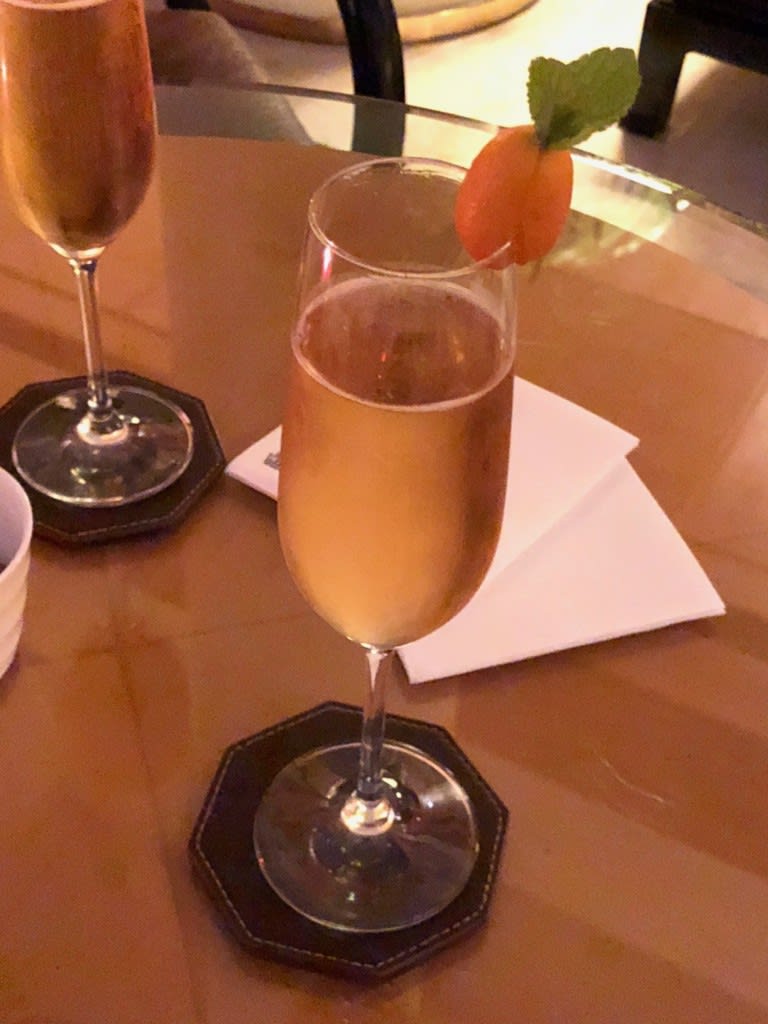 著名なガラス彫刻家、デイル・チフリーにちなんで名づけられたラウンジにはチフリーの作品が浮かび上がるように飾られています。ムーディーな雰囲気でシャンパンを頂きます!