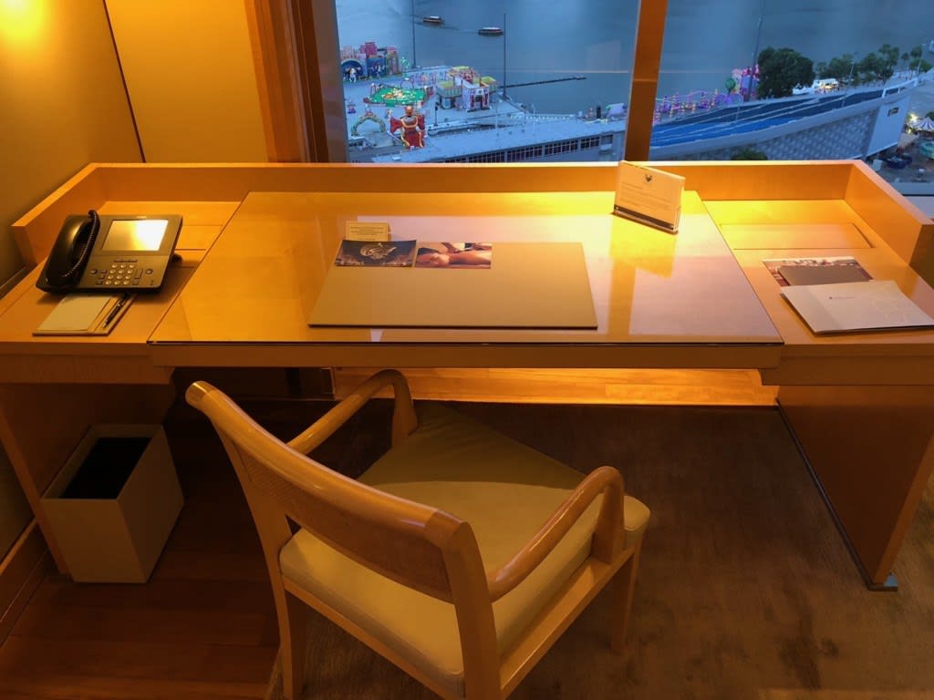 窓に向かって大きなデスクがあり、コンセントや電話などがありました。リッツカールトンの無料Wi-Fiが使えてサクサク通信できるのもとてもよかったです。