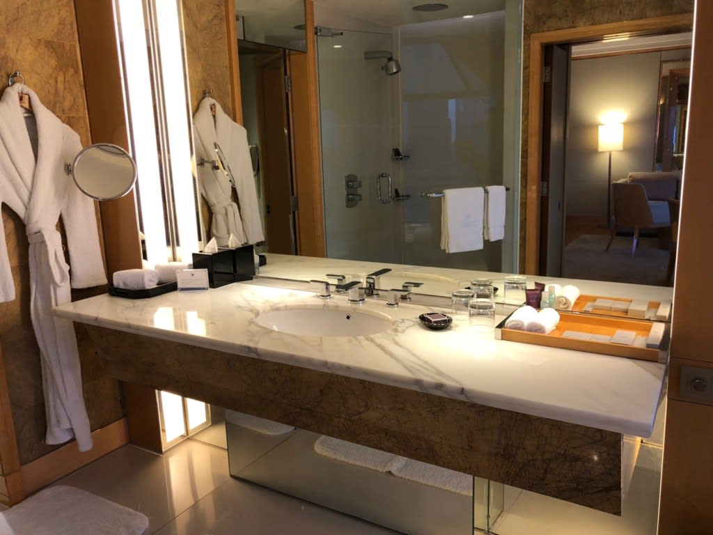 バスルームは浴室からもマリーナベイが見ることができ、夜景を見ながらの入浴は贅沢な気分でした。