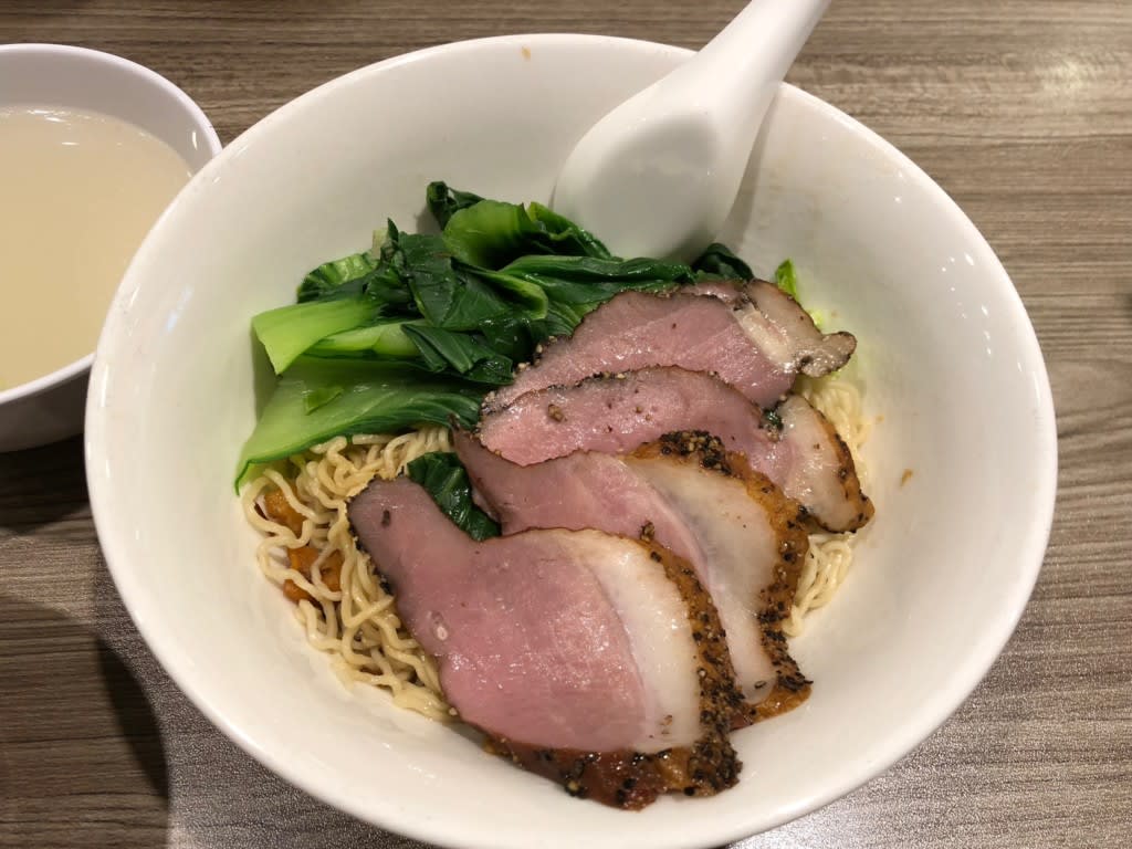 私は鴨肉の汁なし麺。鴨は想像通りの味。麺はインスタント麺です。