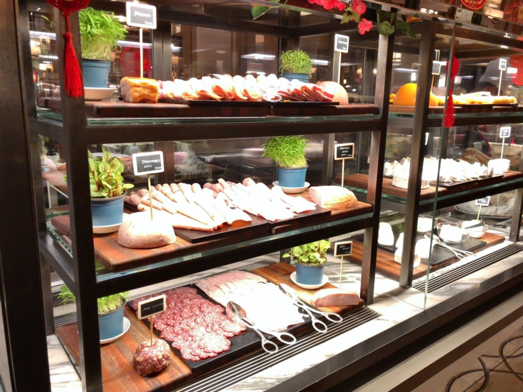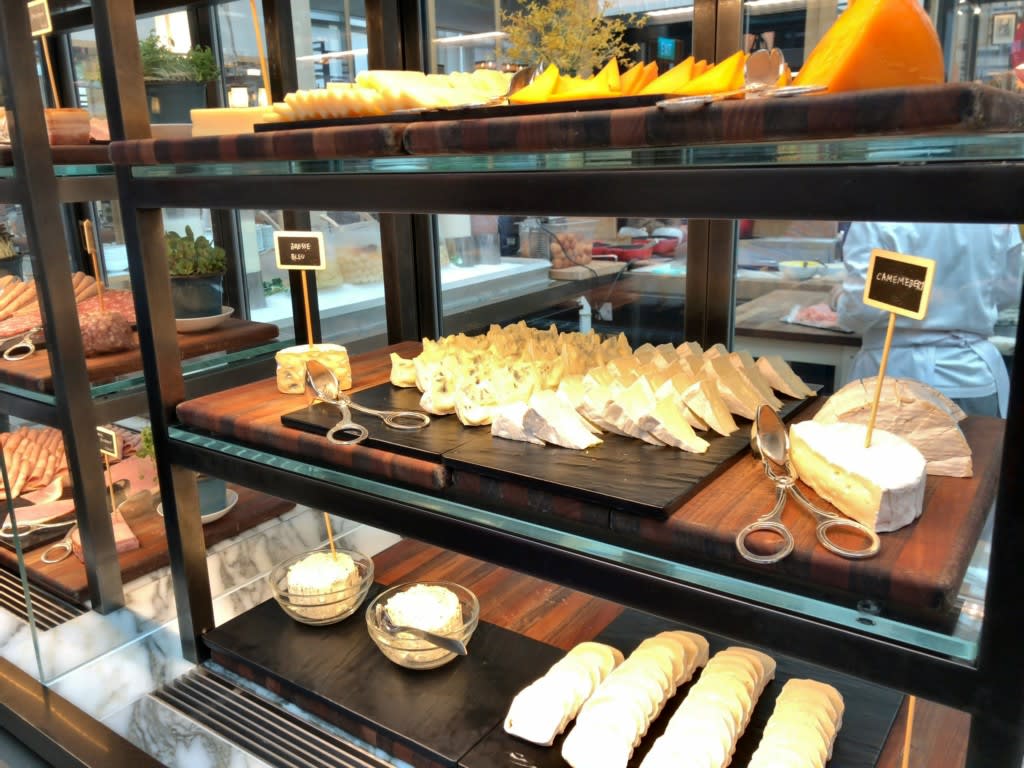 チーズ類は種類が豊富でかなり人気のコーナー、その隣にはハム類のコーナー。