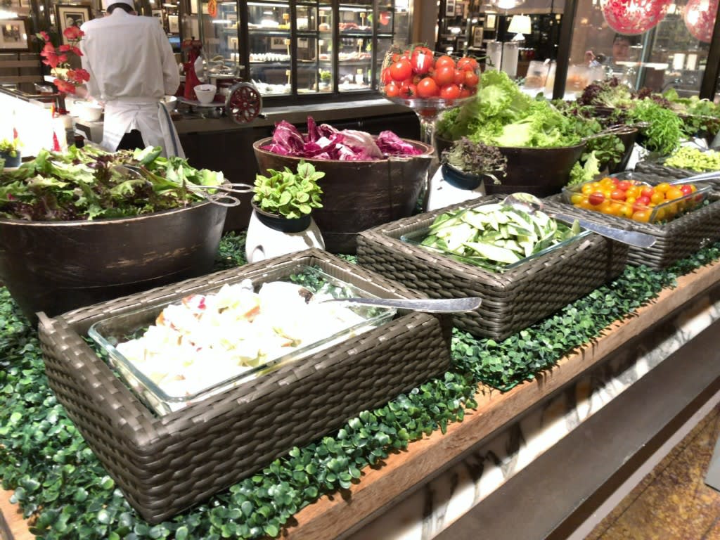葉物の色が美しく新鮮でしたがキュウリは少し硬めでした。1日のうち野菜がたくさん取れるブッフェではしっかり頂きました!