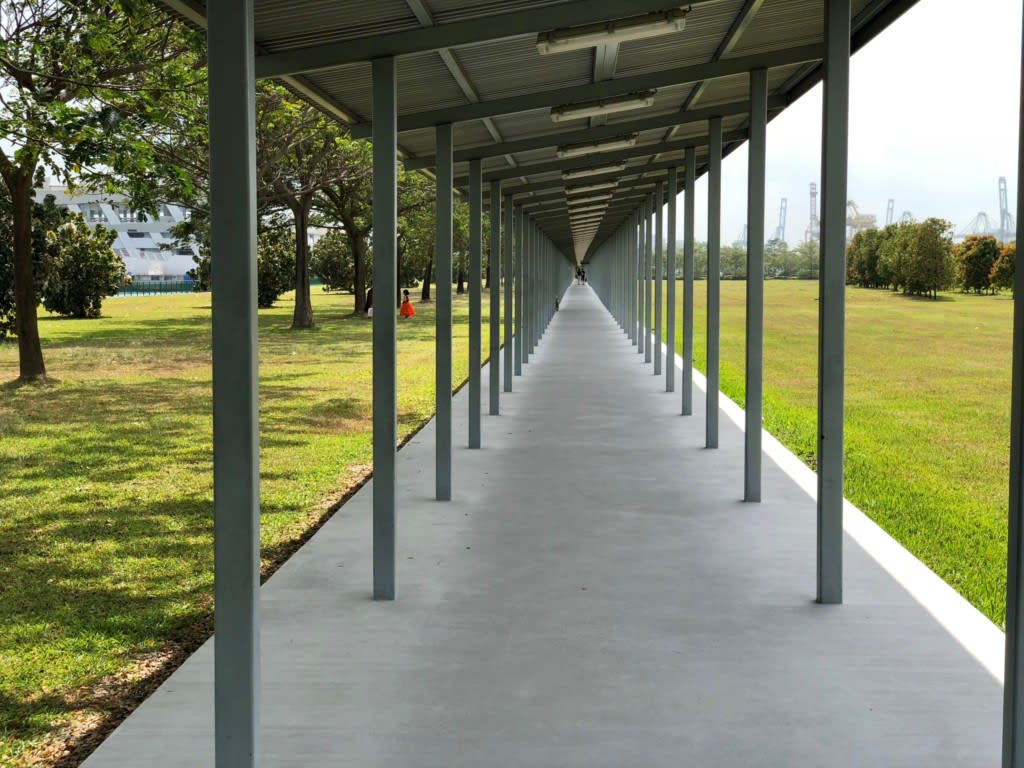 マリーナベイクルーズセンターに近い地上出口を出ると、もう迷うことなく目の前にマリーナベイクルーズセンターへの屋根付き通路が見えるのでそこをひたすらクルーズセンターに向かって歩くだけです。
