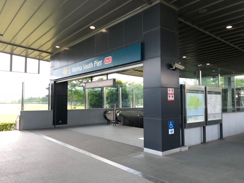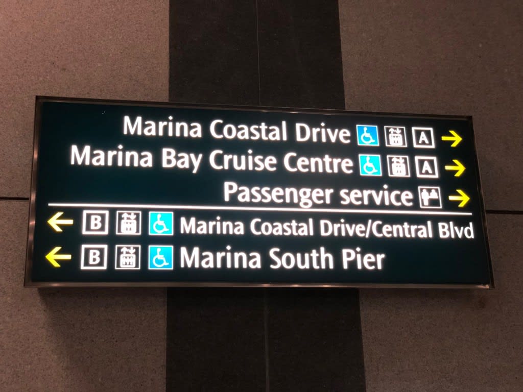 ガーデンズ・バイ・ザ・ベイからマリーナベイクルーズセンターを見たときは遠く感じたのですが、マリーナベイクルーズセンターの最寄り駅マリーナサウスピア駅はマリーナベイサンズ下の駅、ベイフロント駅からは1駅という近さでした。