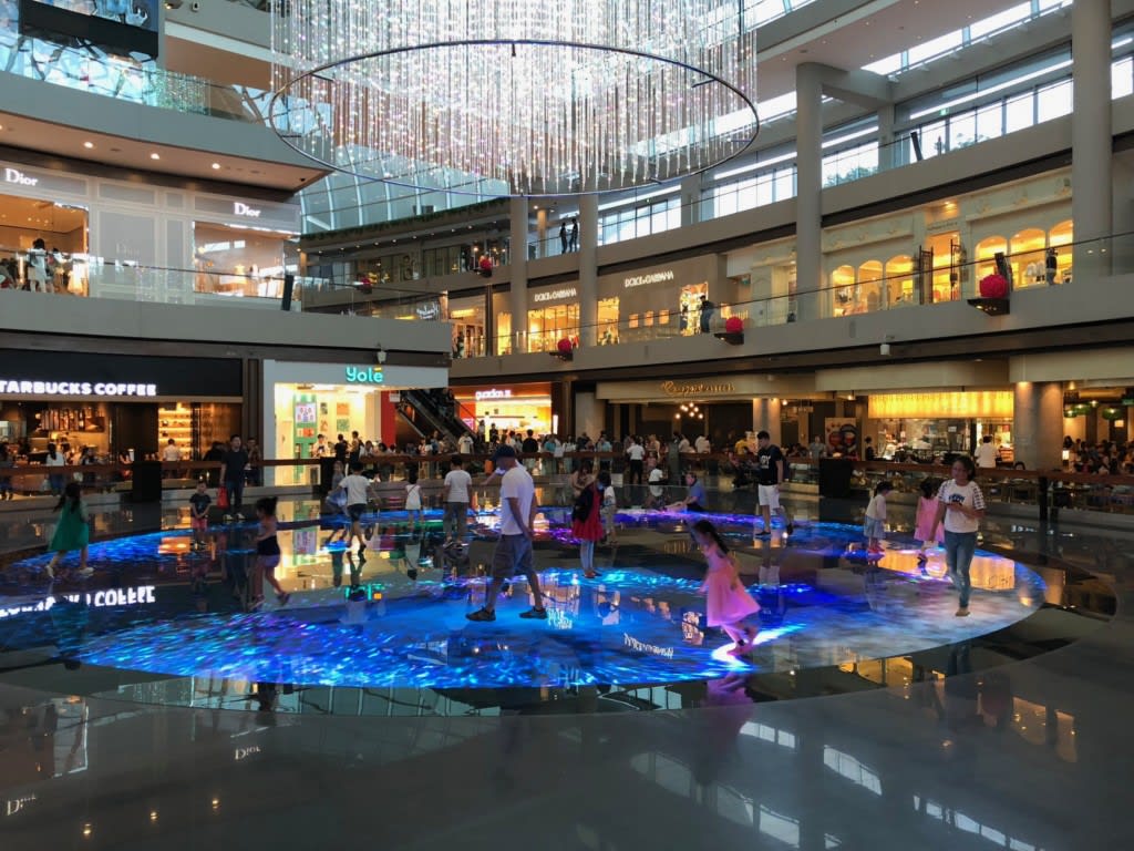 フードコートの横には広場があり自由に中に入れるようです。以前秋頃に来た時にはこの場所はスケートリンクになっていました。