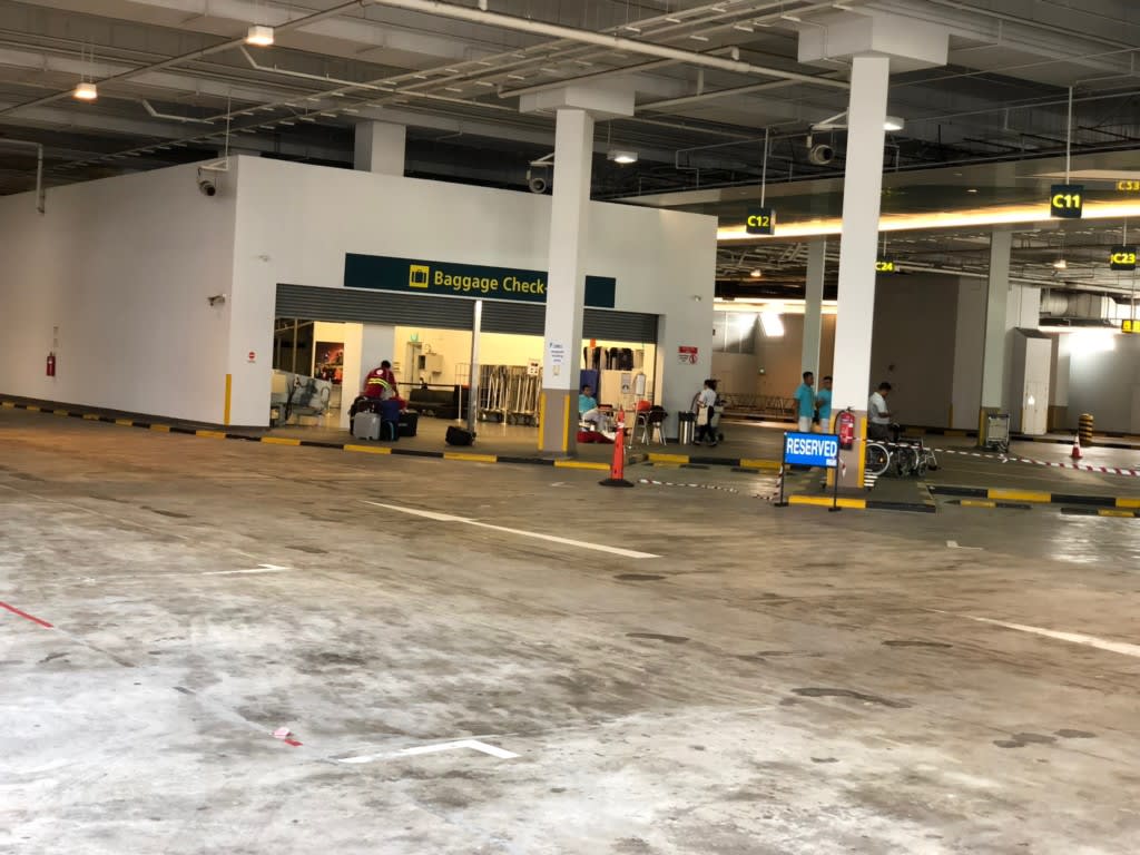 1階は到着口、バゲージチェック、コーチ、タクシー乗り場などがありこの閑散とした場所を通り抜けてセンターに入って行くしかない?のでしょうか。その辺りは不明ですが、地下鉄から歩いてくると最短ルートだと思います。