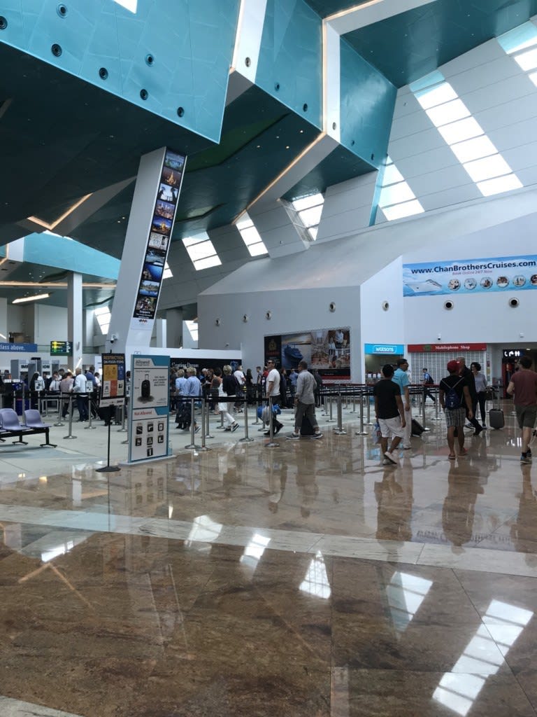 船に戻る乗船客が増えてきました。オプショナルツアーから帰ってきたところのようです。