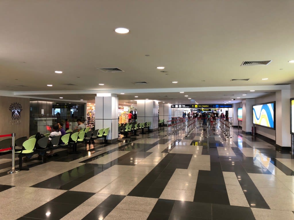 一方インドネシア方面などへのフェリー口周辺の待合室は人でごった返していました。何故こんなに人が多いのか…そして人が多いのに搭乗口周辺のショップが軒並みシャッターが降りていたのかはまだこの時私たちには理解できませんでした。