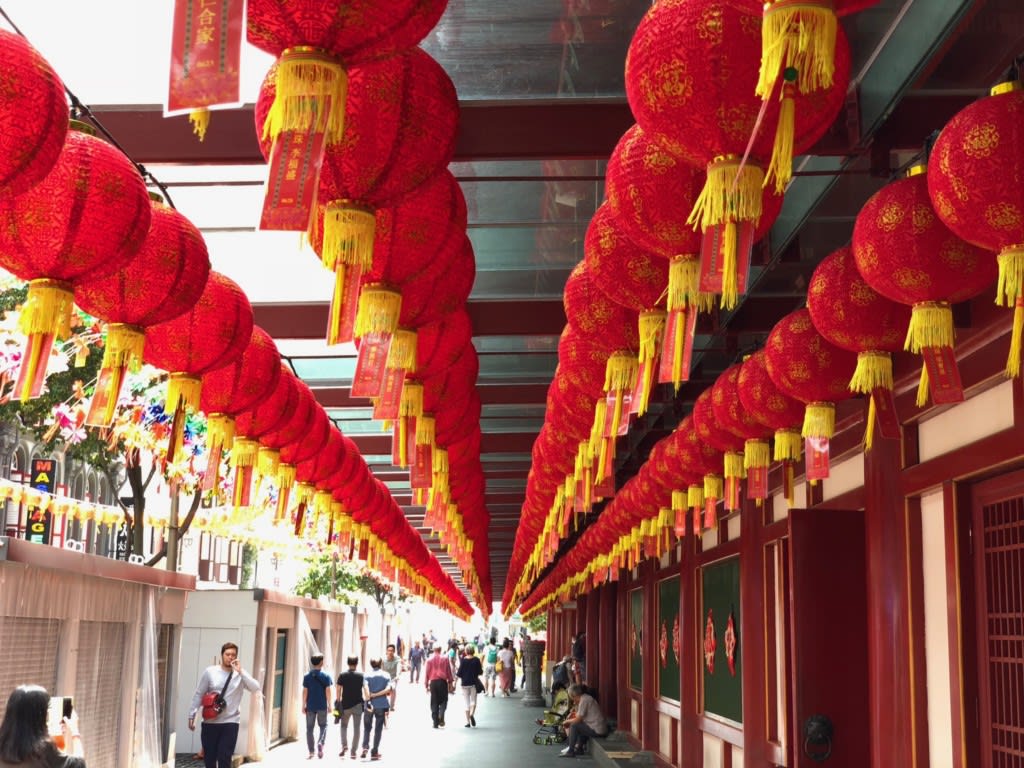地下鉄改札口を登ると、一面中国な風景。アメ横の雰囲気に似ています。「チャイナタウンってこんなに人気のあるエリアなの?」と呑気にブラブラしていましたが、だんだん「ひょっとして春節が近いの?」というかなり遅い気づき…。