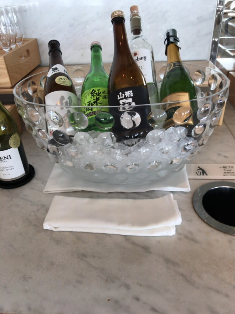 飲み物カウンター(2箇所)があり、セルフサービスですが言うまでもなく飲み放題〜。シャンパンボトルの栓の開け方がわからず手間取っているとスタッフの方が開けてくれて、他のお酒も進められました。