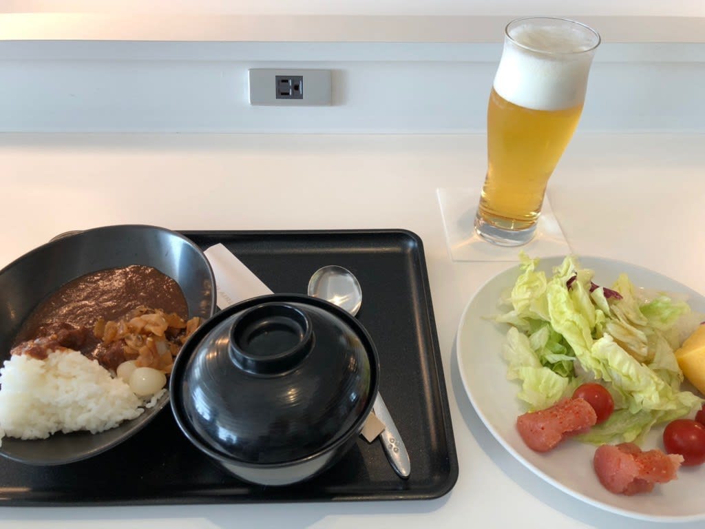 カレーにビール…1日の終わりの食事のようですがこれからが始まりです。