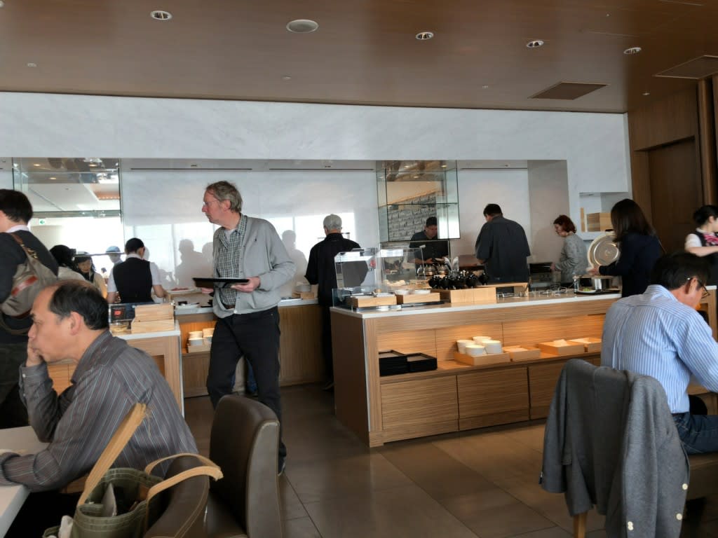 サクララウンジの全体図。飲み物ラウンジはやはり窓際やソファ席が人気のようで食事をした後にはほぼほぼ満席になっていました。