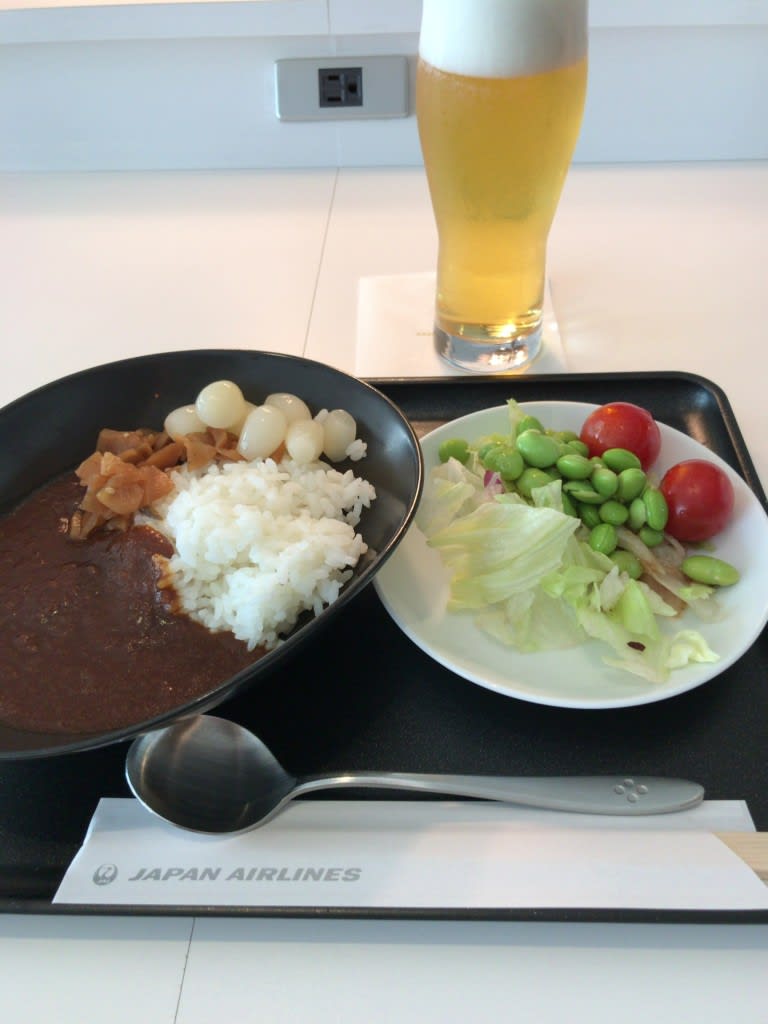 これから旅に出る前のひと時をゆったり過ごす、そんな空間でした。整備中の航空機を見ながらのくつろぎの時間を最後に味わうことができました。