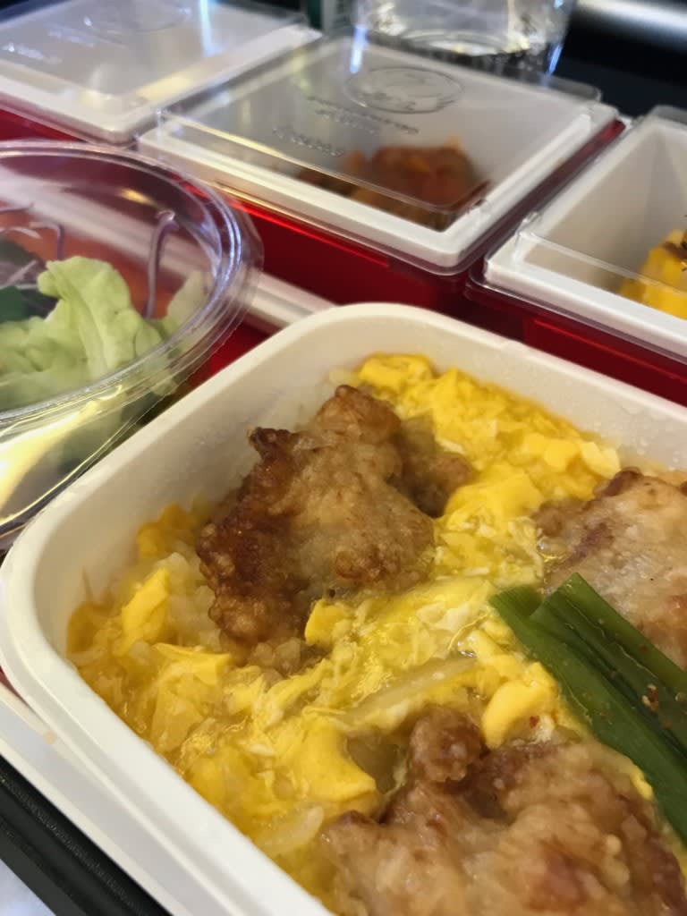 RED U35 若き料理人たちの機内食シリーズ、私が選んだのとろとろ卵の鶏カラ親子丼です。