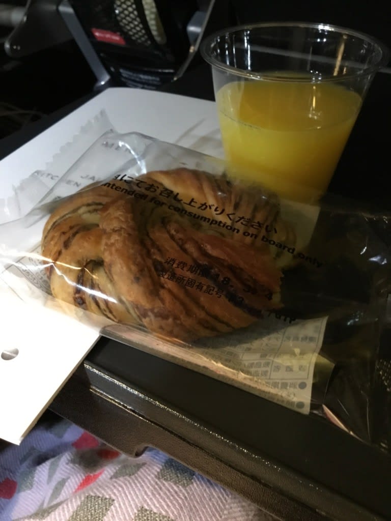 機内食は、出発した国の時間帯で出てくるのでしょうか?この後日本時間15時くらいにはデニッシュが配られ、スープや希望であればうどんDEすかいも持ってきてもらえます。量がちょうどいいサイズ。