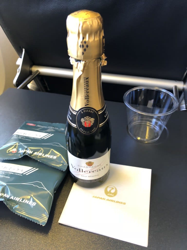 成田空港から約13時間、長いフライトの始まりはやはりシャンパンから!…って、ラウンジで散々飲んだけれど泡好きですものやっぱり飲みます。プレミアムエコノミーの機内食はエコノミーと同じですが、シャンパン、ペリエなどはエコノミーにはないようです。