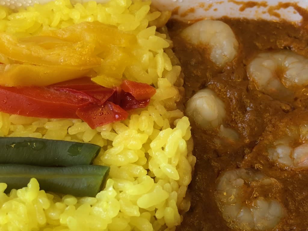 これも見るからに間違いなく美味しそうでした。サフランライスが軽くカレーなのにヘビーではありません。エビもプリプリしていてエビラーとしてはこちらを選ぶべきだった?!