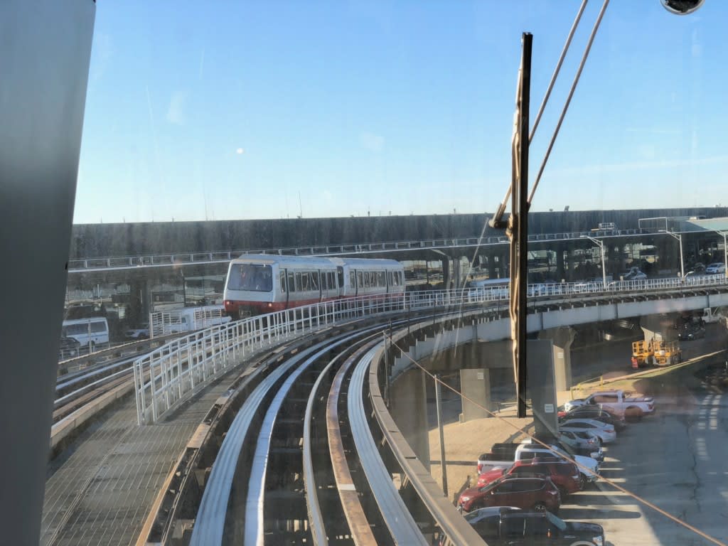 シカゴ空港はターミナルが5つもあってトラムで移動しました。広さに驚きです。