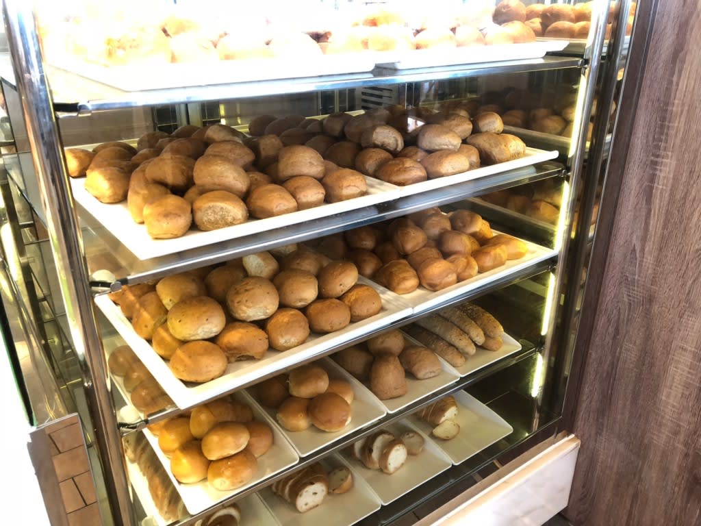 パンの種類だけでもこんなに豊富です。パンは船内で焼いています。