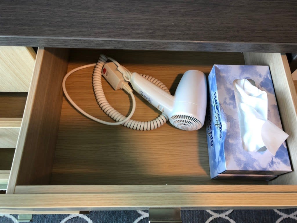 キャビネットの中にはドライヤーとティッシュの予備が入っていました。