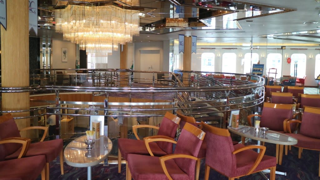メインラウンジよりもはるかにこじんまりしたラウンジですが、写真↑奥の方、楽器類の向こうにカーテンが引かれている部分は窓になっていて航海中このカーテンを開け放して景色を楽しむことができるラウンジだそうです。