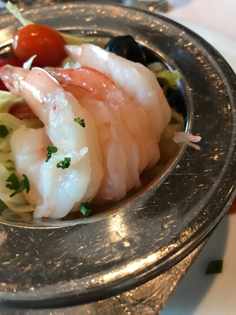 エビ大好きエビラーの私は前菜でシュリンプサラダをチョイス。エビは大きめでプリプリ。