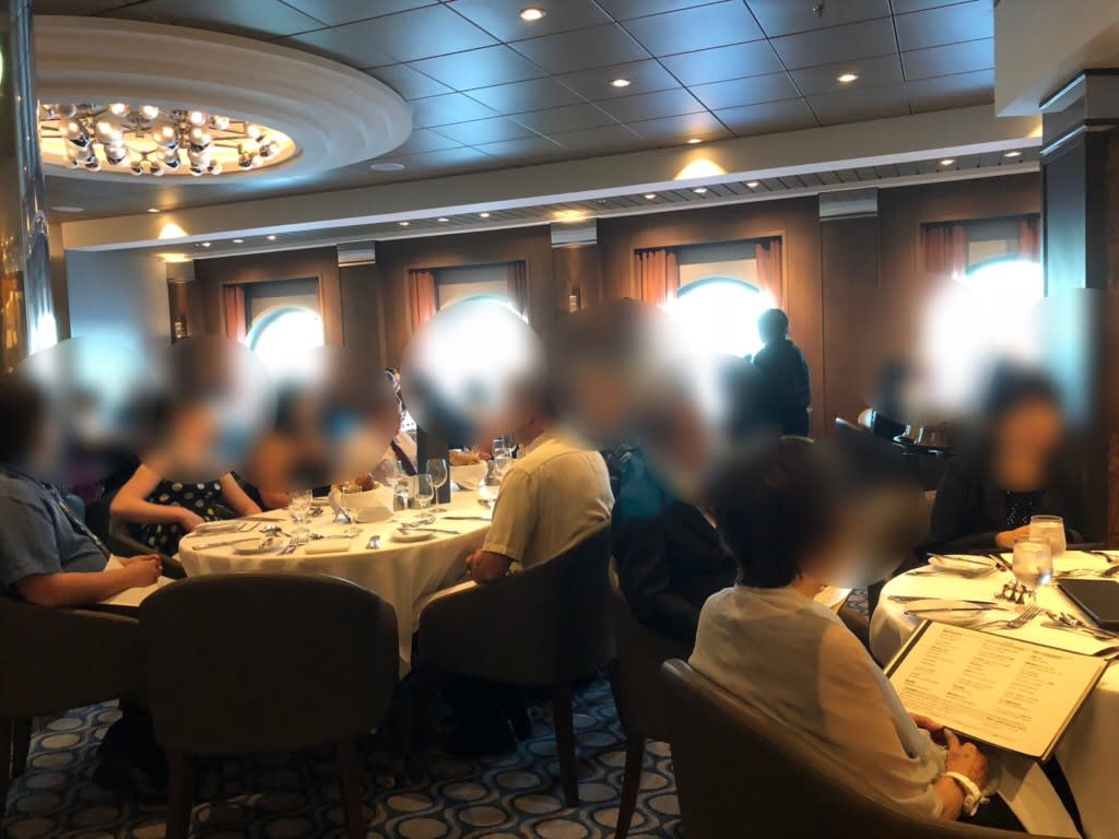 私たちクラブツーリズム御一行は、「決められたテーブル内でどこに座ってもいいですよ」ということだったのでメインダイニングを利用する時はそのテーブル内で好きなところに座っていました。