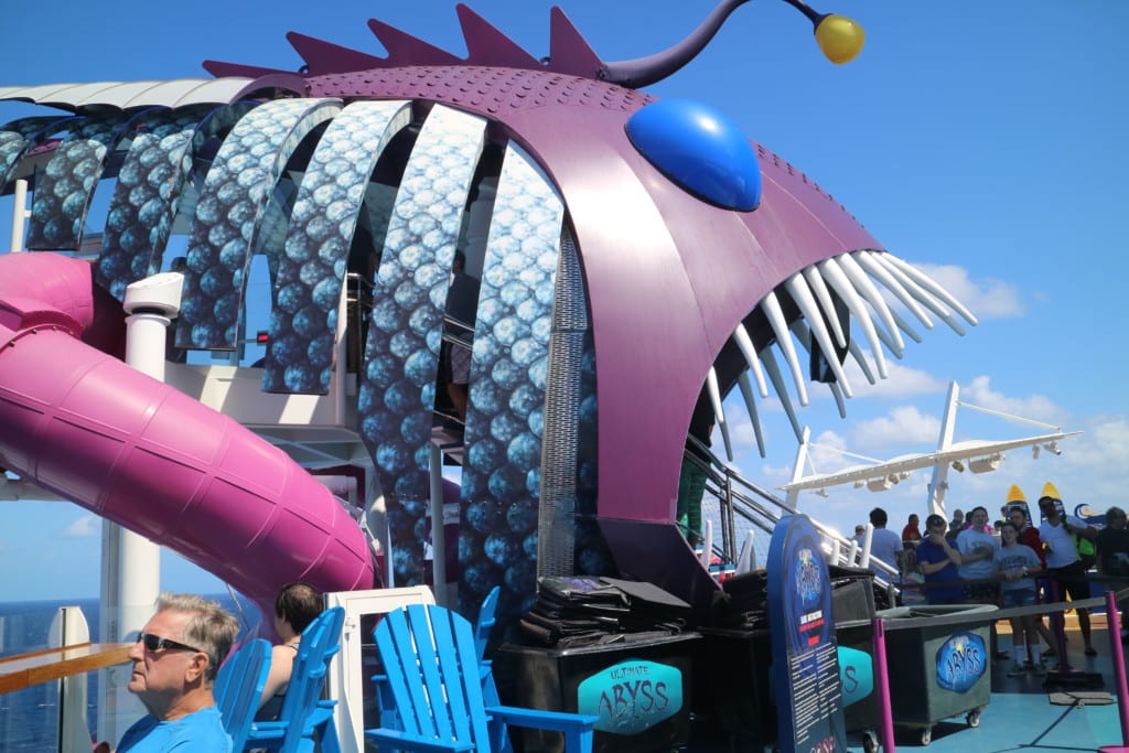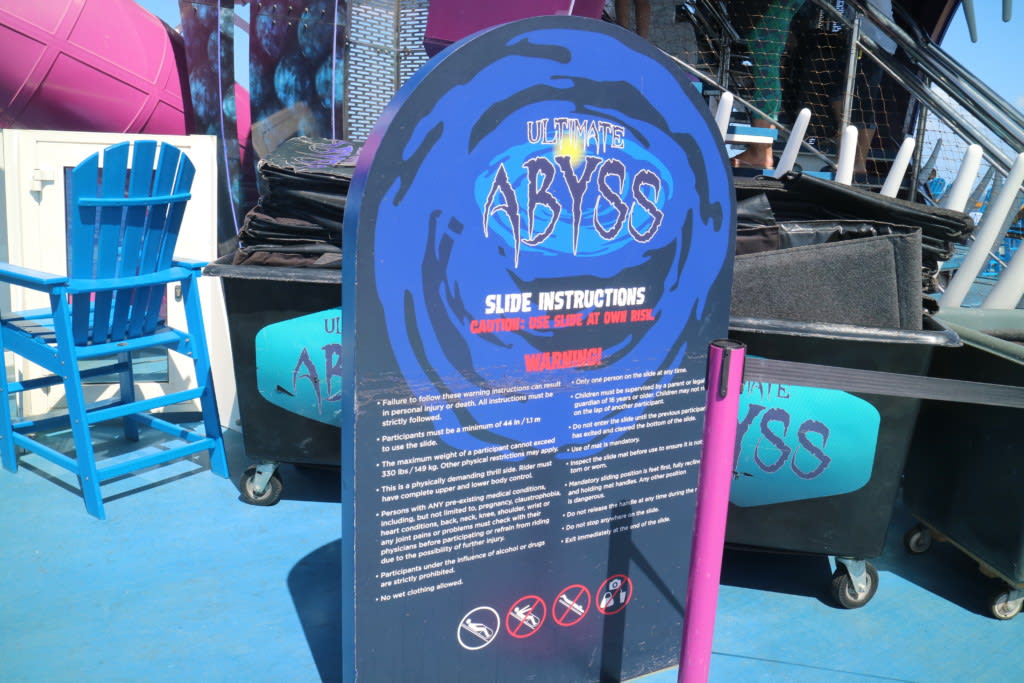 デッキ16の最後方に10デッキ分を急降下するスライダー、アルティメットアビスはハーモニー・オブ・ザ・シーズに初登場!これはトライしてみなくてはでしょ!と思いつつその長さに腰が引けていました。